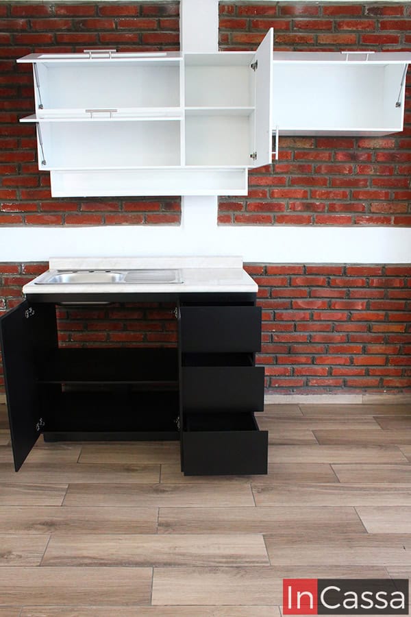 Cocinas integrales modernas, modulares y de fácil instalación. Somos fabricantes y es por eso que tenemos precios accesibles. Fabricadas en MDF Chileno. Cocinas personalizadas en color y cubierta de formica. Jaladeras de acero inoxidable. Opción de elegir cocina diseñada para estufa o parrilla. Escoge entre 121 modelos de cocinas. Todas incluyen zoclo, no se requiere ayuda de un albañil. No necesitamos ir a tomar medidas, el proceso es súper rápido y práctico. Cocina integral TONATICO 2m diseñada para ESTUFA