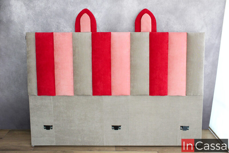 La recámara CHELSEA destaca por su cabecera en escuadra de diseño lúdico, ideal para crear un rincón cómodo donde los niños puedan descansar, leer o jugar. Las franjas verticales aportan dinamismo visual, mientras que las orejitas decorativas añaden un toque original que encantará a cualquier pequeño.