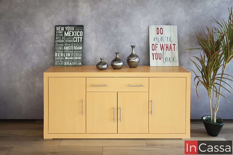 Credenzas con diseños modernos y exclusivos. Contamos con 30 diseños de buffeteros y vitrinas a elegir y 40 opciones de pintura para su acabado. Mueble multifuncional para guardar todo lo que necesites, puedes usarla en el recibidor, en el comedor para guardar toda la vajilla y cristalería, para separar un espacio ó incluso en la recamara como una cómoda o cajonera. Elige entre una variedad de estilos modernos, minimalistas, vintage y nórdicos. Nuestros bufeteros modernos están fabricados en MDF chileno. Bufetero vintage Modelo TALPA