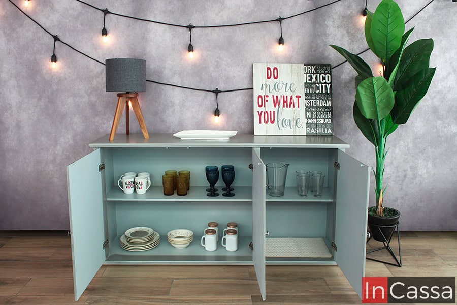Credenzas con diseños modernos y exclusivos. Contamos con 30 diseños de buffeteros y vitrinas a elegir y 40 opciones de pintura para su acabado. Mueble multifuncional para guardar todo lo que necesites, puedes usarla en el recibidor, en el comedor para guardar toda la vajilla y cristalería, para separar un espacio ó incluso en la recamara como una cómoda o cajonera. Elige entre una variedad de estilos modernos, minimalistas, vintage y nórdicos. Nuestros bufeteros modernos están fabricados en MDF chileno. Bufetero Vintage Modelo KASAN