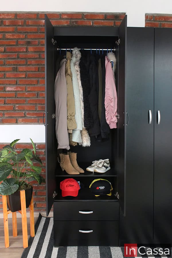 Clóset modulares modernos que no requieren de instalación. Se entregan los muebles armados. Guardarropas y clóset con diseños exclusivos de InCassa Muebles. Precio de fábrica. Elige el color que quieras, tenemos todos. No requieren instalación tediosa ni empotrarse, pues los clóset se fabrican en 2 piezas y los guardarropas en una pieza, son muebles modulares que puedes colocar en el lugar que quieras. Somos fabricantes. Además para complementar los muebles de tu habitación, contamos también con: bases para cama, colchones, tocadores, cajoneras y zapateras. Clóset Modelo PERUGIA