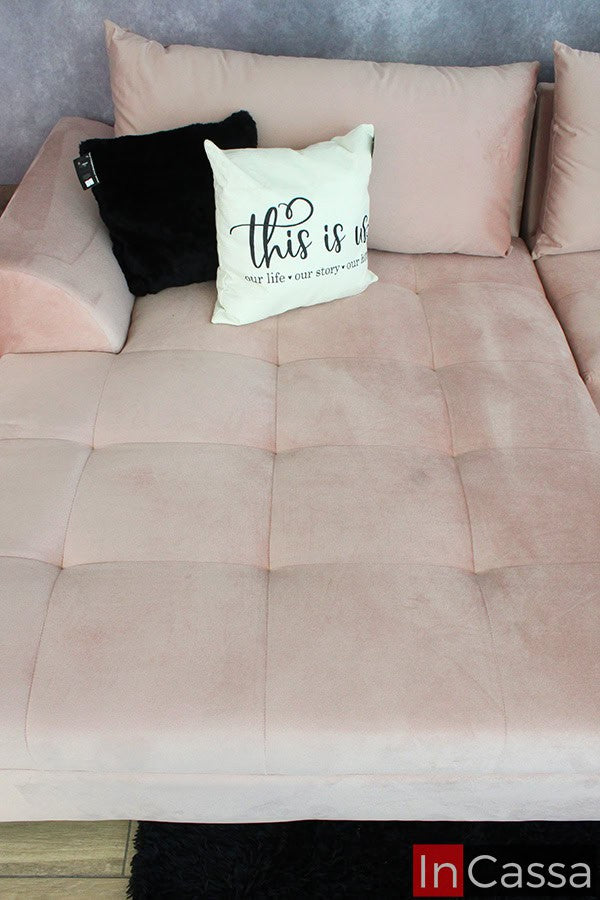 Contamos con 4 opciones de telas: Suede, lino, tactopiel y pliana. Tenemos un muestrario con 86 colores a elegir en telas. Fabricamos salas chicas, medianas y grandes, modalidad en escuadra o modulares. Estructura fabricada en madera de pino, resortes metálicos y espumas de poliuretano. Nuestros acojinamientos tienen un buen relleno y como resultado dan sofás suaves y cómodos. Tapizados estilo capitaneado o capitoné. En su exterior la estructura de los modelos son contemporáneos y como patas, usamos las metálicas para dar ese toque moderno y minimalista a nuestros muebles. Es decir, ofrecemos salas para todos los estilos, tamaños, gustos y bolsillos. Sala Modelo SINALOA